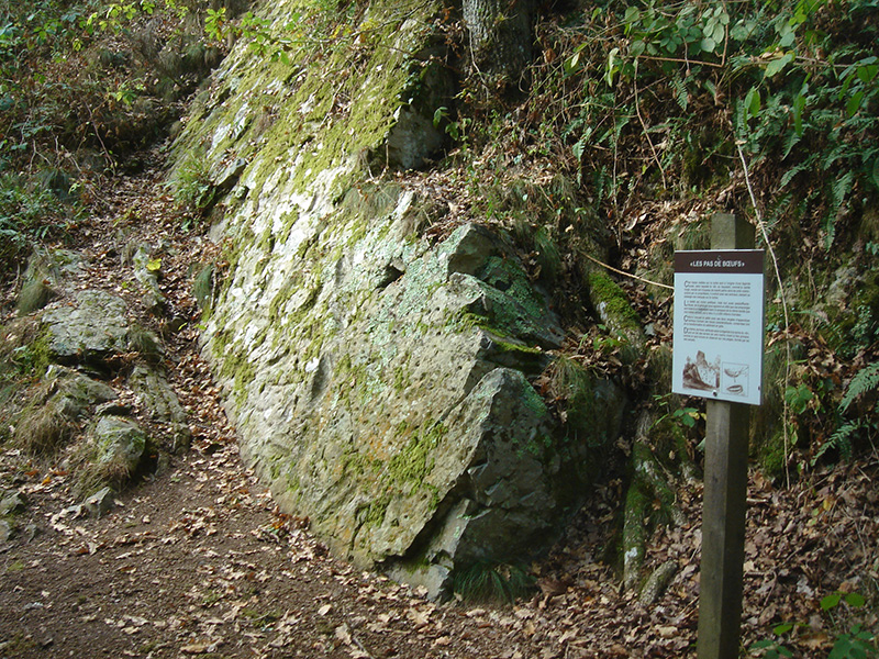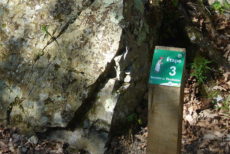 Le Rocher ou dalle des pas-de-bœufs, localisée à l’amont de la cluse du Meillon, en rive gauche du ruisseau, constitue une étape du circuit du Vaudobin. Ce circuit pittoresque comporte des sentiers pédestres balisés. |