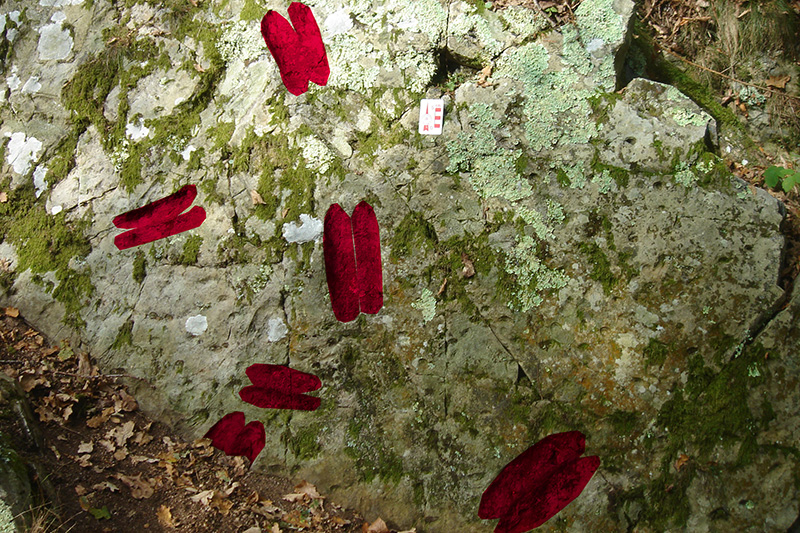 Sur le circuit du Vaudobin, le Grès armoricain présente d’autres traces de bioturbation. Les skolithes (ichnogenre Skolithos), sont des terriers, en forme de longs tubes, lisses ou annelés, perpendiculaires au plan de stratification, localisés plutôt dans les bancs massifs homogènes. Ils ont été creusés par des vers marins vivant dans un milieu à sédimentation rapide et irrégulière, probablement dans la zone tidale ou subtidale.