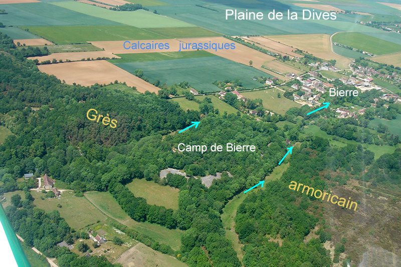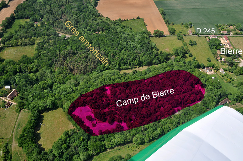 Le Camp de Bierre est un monument celtique bâti en deux étapes, à la fin de l’âge du Bronze et à la fin du 1er âge du Fer (entre le 6° siècle et le 2° siècle avant J.C.). Le site a été occupé dès le Néolithique (datations par le C14 et l’étude de débris de céramiques), avant la construction des fortifications monumentales. Il est établi entre Trun et Argentan, sur la barre de Grès armoricain du synclinal varisque de la Zone bocaine.