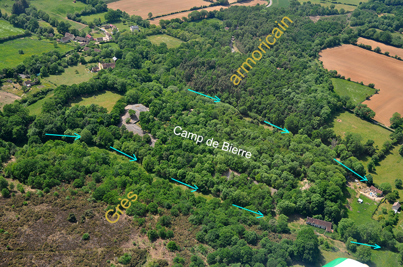 Le Camp de Bierre est un système fortifié établi sur la barre de Grès armoricain boisée appartenant au synclinal varisque de la Zone bocaine, orientée N110. Le camp s’étend sur 450m de longueur et une largeur de 100 à 300m.