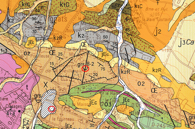Extrait de la carte géologique à 1/50000, feuille Falaise (BRGM Orléans)