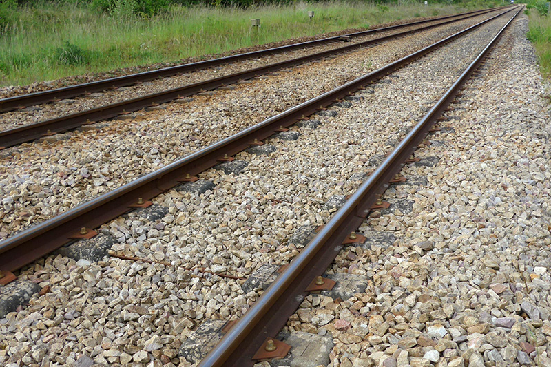 Les rails reposent sur un ballast constitué de blocs de Grès armoricain provenant de la carrière de Vignats.
