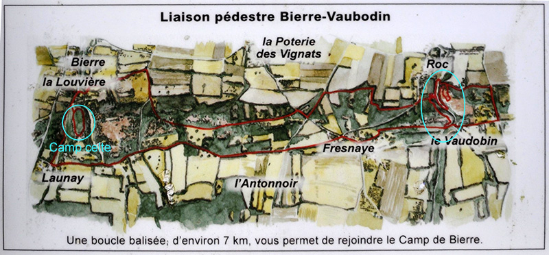 Un circuit pédestre permet d’accéder au Camp celte de Bierre, implanté sur la barre de Grès armoricain, à 3 km à l’Ouest du site du Vaudobin.