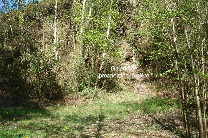 La galerie minière de prospection est localisée en rive droite du Meillon, à flanc de versant. D’autres sites du Grès armoricain ont fait l’objet d’une prospection, dans le Cotentin et en Bretagne.