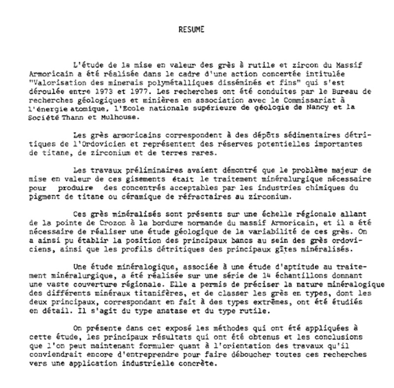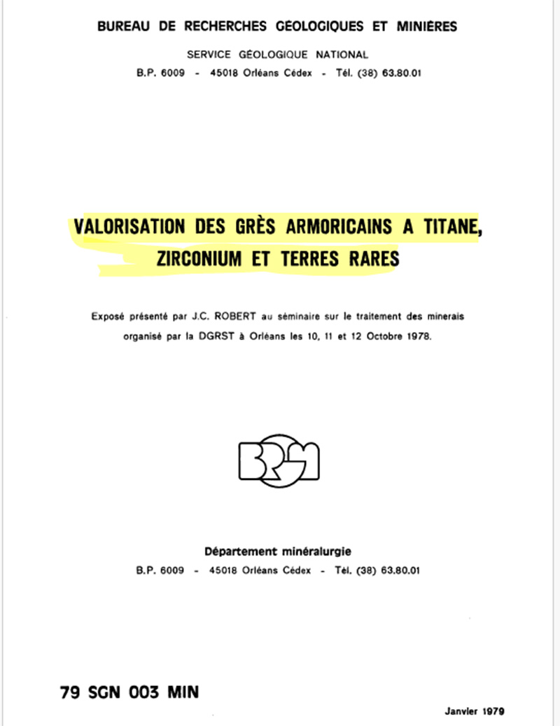 possible valorisation du Grès armoricain pour l’extraction de titane, zirconium et terres rares. |
