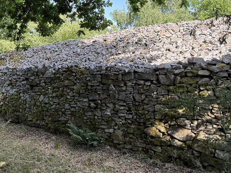 Le rempart est constitué d’un parement interne en pierres sèches dressé devant une accumulation de blocs de grès. La construction de telles murailles a exigé l’apport d’une énorme quantité de matériaux.