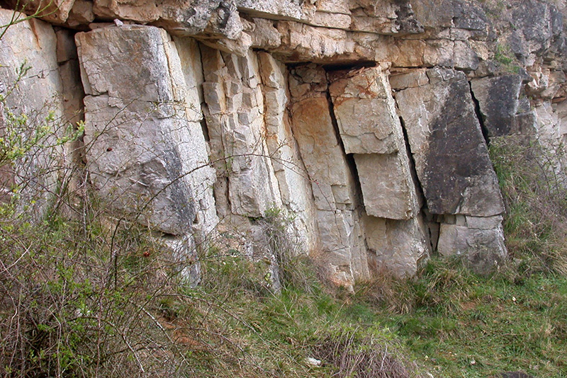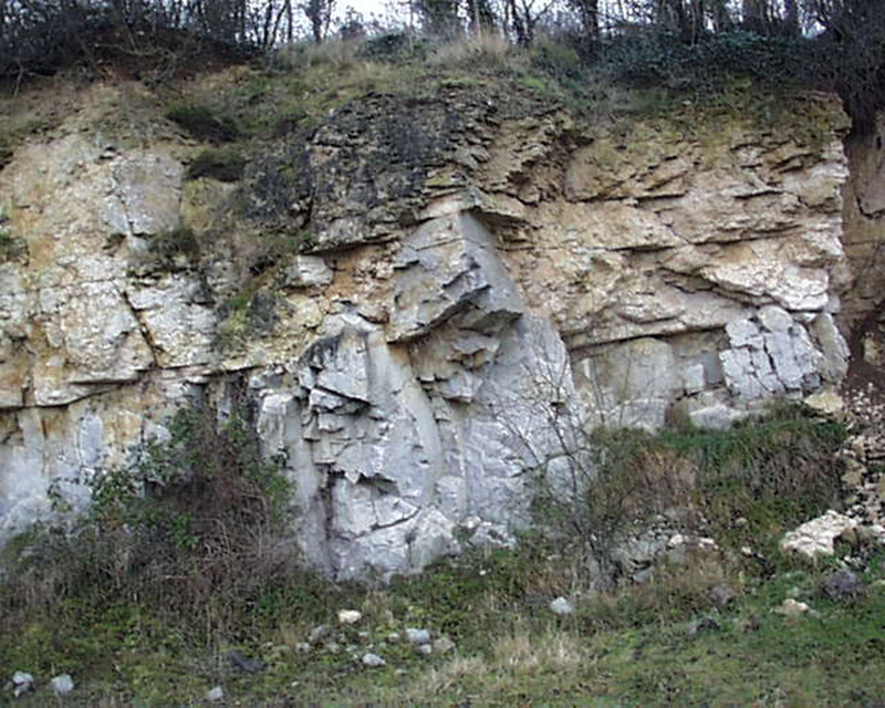 Le Grès armoricain affleure sous la couverture de calcaires jurassiques. Il est constitué de bancs massifs de quartzite, de 20 à 80 cm d’épaisseur, très fracturés et fortement redressés ; le pendage est de 80° vers le sud et la direction des bancs est N120, ce qui correspond à la direction des plis de la chaîne varisque.