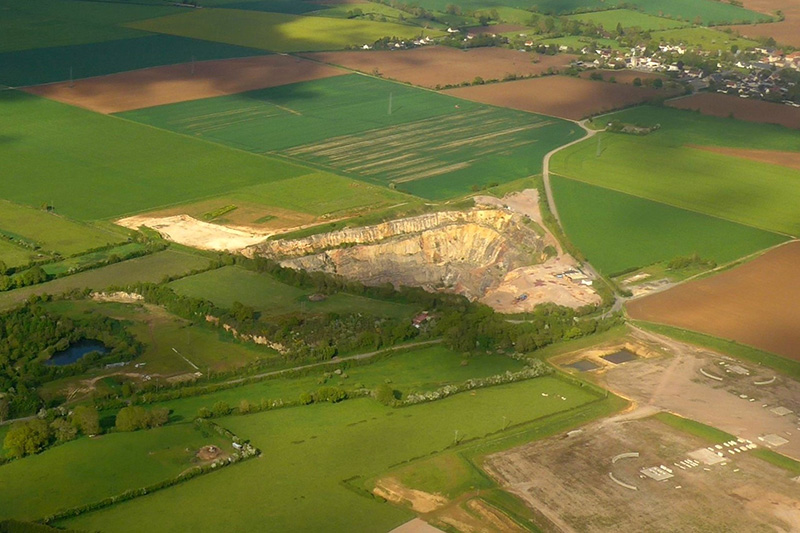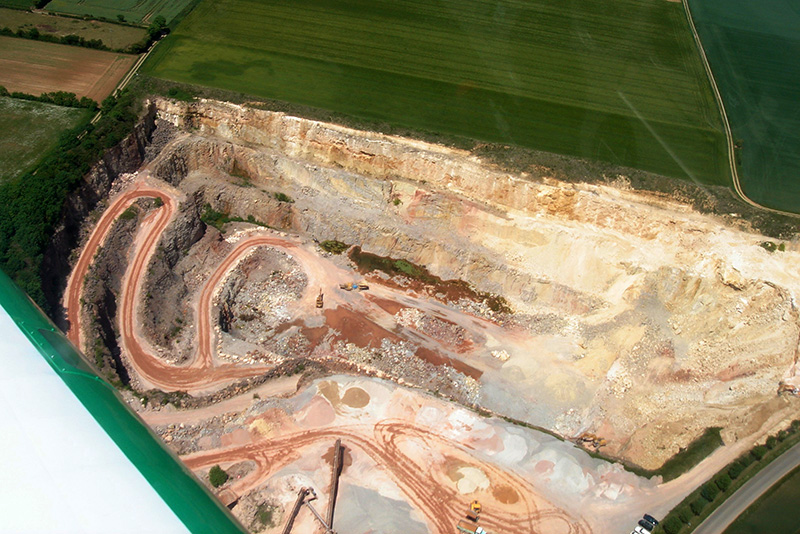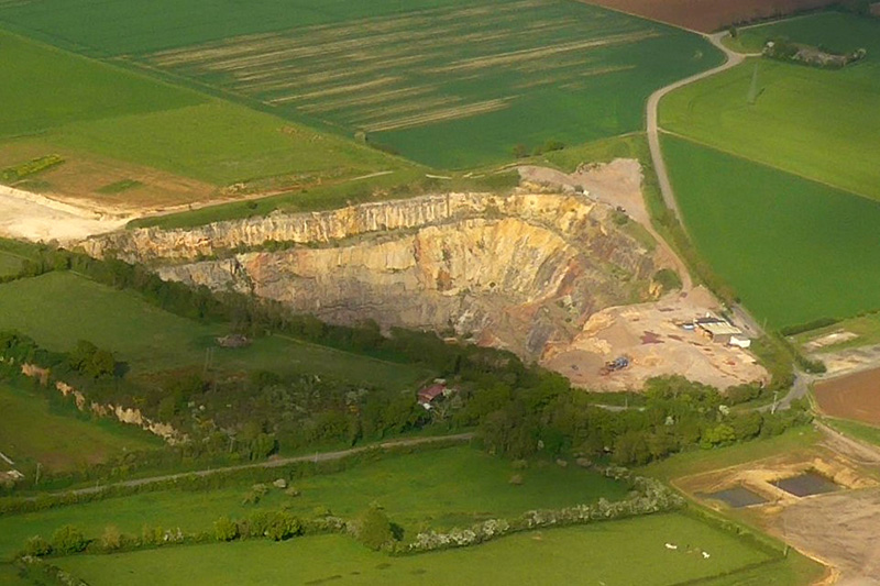 Une vue rapprochée montre que les installations ont disparu. Les fronts de taille actuels, contraints par la surface du site, sont épuisés. Cet abandon de l’exploitation de la carrière paraît en contradiction avec la découverte réalisée pour projet d’extension vers le Nord.